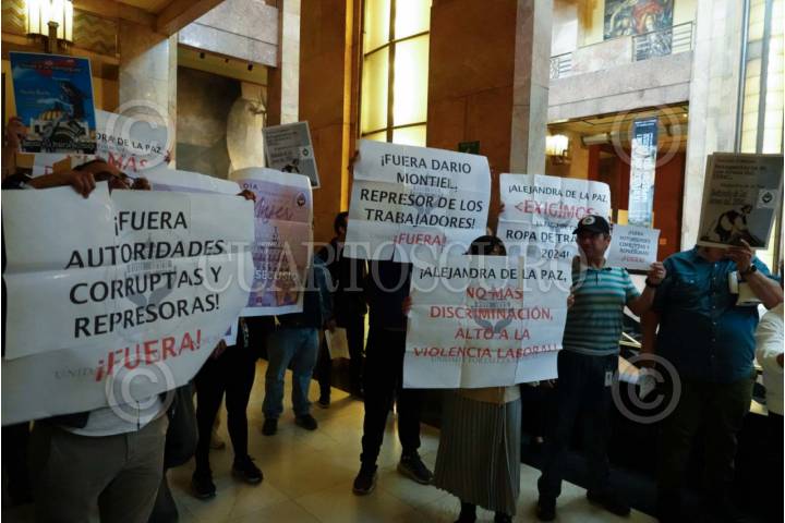 CIUDAD DE MÉXICO, 24MARZO2025.- Trabajadores del Palacio de Bellas Artes protestaron para exigir justicia debido a su inconformidad en contra de Alejandra de la Paz, directora del INBAL, durante un recorrido a medios en este recinto. FOTO: GRACIELA LÓPEZ/CUARTOSCURO.COM