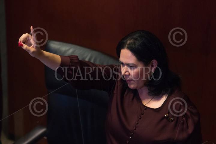 Alejandra del Carmen León Gastélum, integrante de la bancada plural, pide la palabra durante la sesión en el Senado de la República.