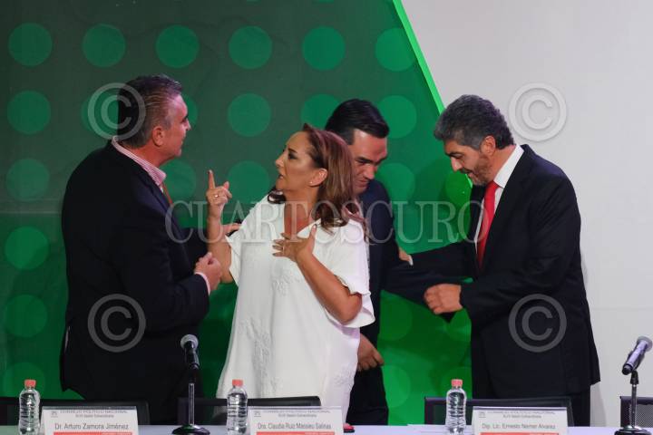CIUDAD DE MÉXICO, 18AGOSTO2019.- El senador Arturo Zamora Jiménez, Claudia Ruíz massieu, presidenta del Partido Revolucionario Institucional (PRI), y el diputado Ernesto Nemer Álvarez durante protesta de Alejandro Alito Moreno y Carolina Viggiano Austria, como Dirigente Nacional y Secretaria General respectivamente del Comité Ejecutivo Nacional para el periodo 2019-2023, el cual se llevó a cabo en el auditorio "Plutarco Elías Calles" de las instalaciones del PRI. FOTO: GRACIELA LÓPEZ / CUARTOSCURO.COM