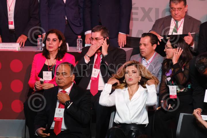 CIUDAD DE MÉXICO, 18AGOSTO2019.- Héctor Antonio Astudillo Flores, gobernador de Chilpancingo, Guerrero y Claudia Artemiza Pavlovich, gobernadora de Sonora, durante protesta de Alejandro Alito Moreno y Carolina Viggiano Austria, como Dirigente Nacional y Secretaria General respectivamente del Comité Ejecutivo Nacional para el periodo 2019-2023, el cual se llevó a cabo en el auditorio "Plutarco Elías Calles" de las instalaciones del PRI. FOTO: GRACIELA LÓPEZ / CUARTOSCURO.COM