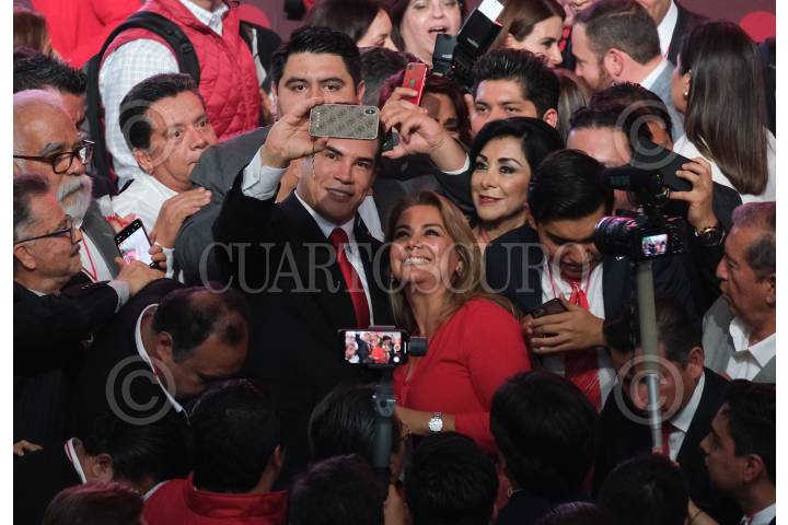 CIUDAD DE MÉXICO, 18AGOSTO2019.- Alejandro Alito Moreno, el nuevo Dirigente Nacional del Comité Ejecutivo Nacional para el periodo 2019-2023, se tomo fotografías con invitados al termino de su toma de protesta, el cual se llevó a cabo en el auditorio "Plutarco Elías Calles" de las instalaciones del PRI. FOTO: GRACIELA LÓPEZ / CUARTOSCURO.COM