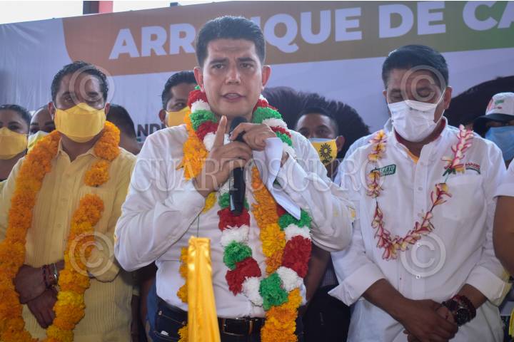 Alejandro Arcos Catalán, candidato a la alcaldía de Chilpancingo por la coalición PRI-PRD, inició su campaña electoral en la cual prometió agua para este municipio.
