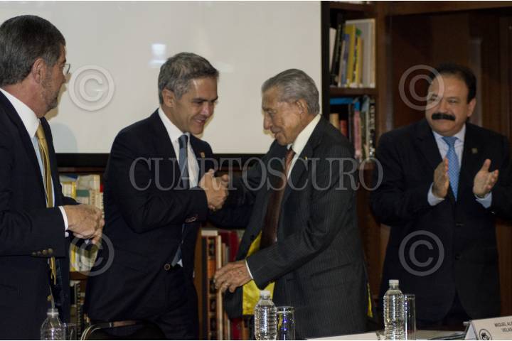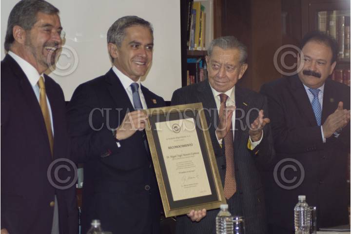 CIUDAD DE MÉXICO, 30JUNIO2016.- El doctor Juan Ramón De la Fuente; Miguel Ángel Mancera, jefe de Gobierno de la Ciudad de México; Miguel Alemán Velasco, presidente la Fundación Miguel Alemán y Armando Ahued Ortega, secretario de Salud de la Ciudad de México, durante la entrega del reconocimiento en las inmediaciones de dicha Fundación para el jefe de gobierno por la creación y resultados del programa “Médico En Tu Casa”. FOTO: GALO CAÑAS /CUARTOSCURO.COM