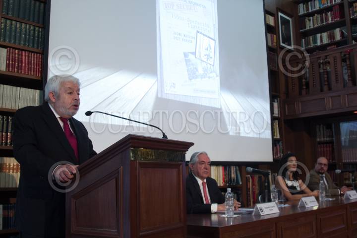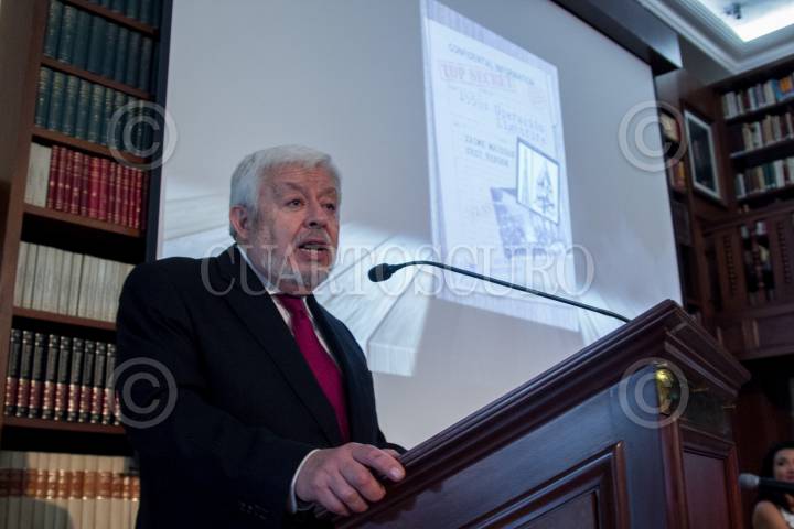 CIUDAD DE MÉXICO, 30AGOSTO2017.- Alejandro Carrillo Castro, presidente de la Fundación Miguel Alemán, durante la presentación del libro de Jaime Maussan y la escritora Cecy Rendón “1959: Operación Lightfire”. La obra describe los sucesos ocurridos en nuestro país los días 26 y 27 de diciembre del mismo años en donde agentes del gobierno mexicano robaron tecnología espacial soviética, que se exponía en el Auditorio Nacional, para entregársela a Estados Unidos. FOTO: GALO CAÑAS /CUARTOSCURO.COM