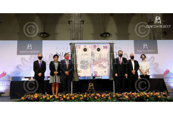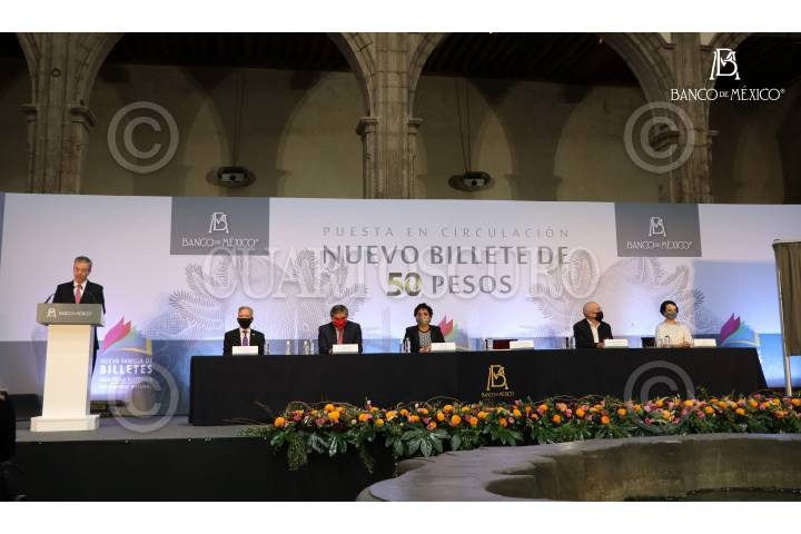 Los integrantes del Banco de México encabezaron la presentación del nuevo billete de 50 pesos.