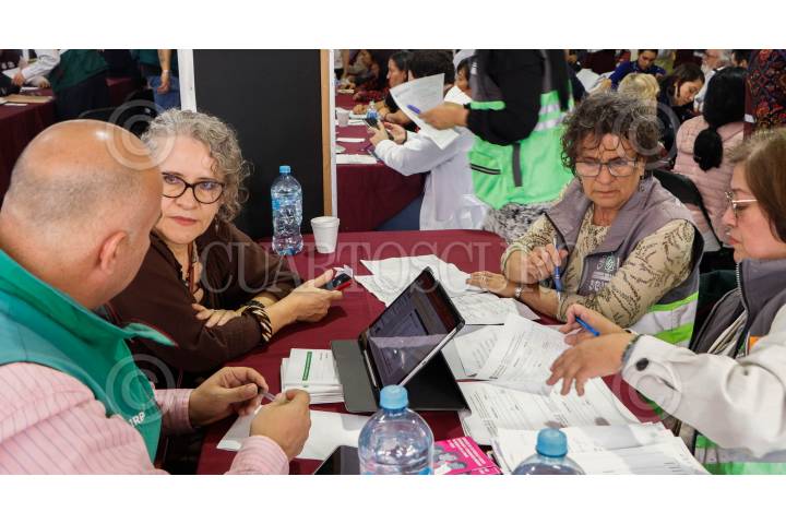 CIUDAD DE MÉXICO. 15OCTUBRE2024.- La jefa del Gobierno de la Ciudad, Clara Brugada Molina, as´i cono varios funcionarios del Gobierno Capitalino, atendiendo gente en la Jornada de atención Ciudadana en el Zócalo de la Ciudad. FOTO: GOBIERNO DE LA CIUDAD/CUARTOSCURO.COM