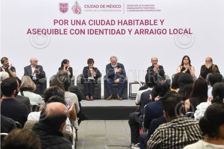 CIUDAD DE MÉXICO, 25JULIO2025.- Patricia Ramírez Kuri, titular del Instituto de Planeación Democrática y Prospectiva; Alejandro Encinas, titular de Planeación y Ordenamiento Territorial, e Inti Muñoz Santini, secretario de Vivienda, durante el foro del primer bando de gobierno "Por una ciudad habitable y asequible con identidad y arraigo local" realizado en las instalaciones del Museo de la Ciudad de México. Dicha iniciativa es una iniciativa que busca combatir la gentrificación y sus efectos negativos en la población. FOTO: MARIO JASSO/CUARTOSCURO.COM