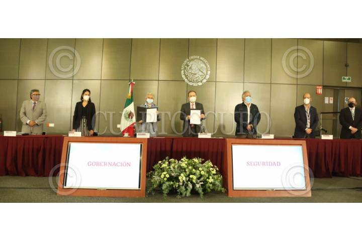 Olga Sánchez Cordero Titular de Secretaría de Gobernación y Alfonso Durazo Montaño de Seguridad y Protección Ciudadana, firmaron convenio para facilitar el intercambio de información entre instituciones e impulsar la estrategia de seguridad de la Cuarta Transformación. En el evento también participaron titulares de la Subsecretaría de Derechos Humanos, Población y Migración, Alejandro Encinas Rodríguez y del Registro Nacional de Población e Identidad, Jorge Wheatley. El mensaje principal del evento fue la cooperación, coordinación y corresponsabilidad interinstitucional.