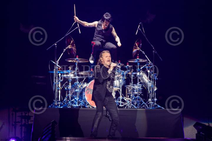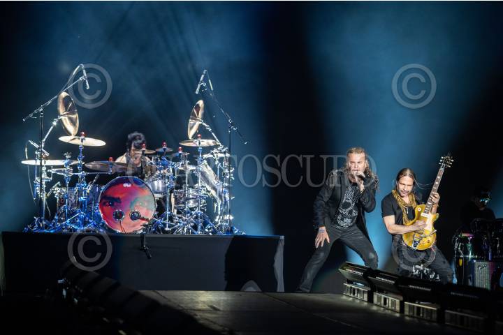 Fernando Olvera “Fher” y Alejandro González durante el concierto de la banda mexicana Maná presentando su gira “México Lindo y Querido” en el Foro Sol, después de más de 5 años de no presentarse en tierra azteca.