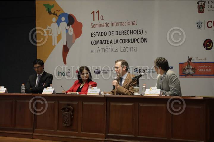 Jorge Alejandro Ortiz, Norma Julieta del Río Venegas, Lorenzo Córdova Vianello, y Alejandro González, durante el 11 Seminario Internacional "Estado de Derechos (s) y Combate a la Corrupción en América Latina.