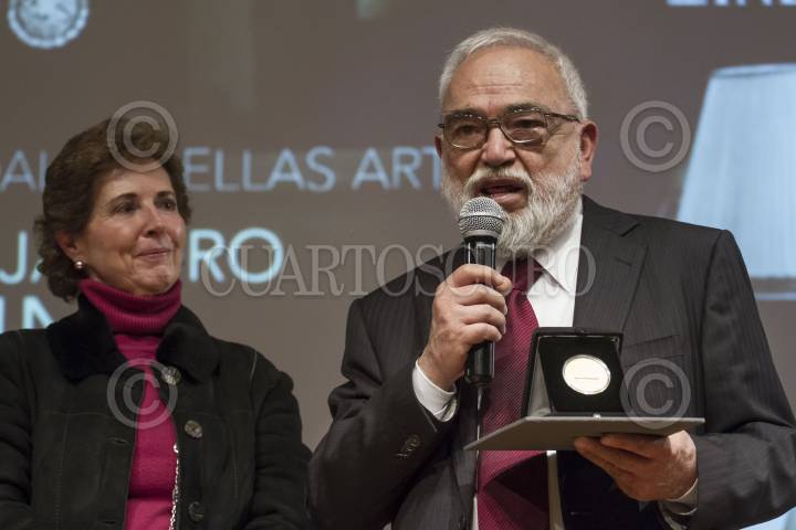 MÉXICO, D.F., 13ENERO2016.- El escenógrafo Alejandro Luna Ledesma recibió la medalla Bellas Artes por su contribución al desarrollo de las artes escénicas en México, en una ceremonia en la Sala Manuel M. Ponce del Palacio de Bellas Artes. FOTO: ISAAC ESQUIVEL /CUARTOSCURO.COM