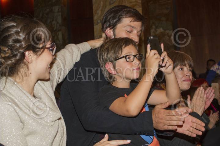 MÉXICO, D.F., 13ENERO2016.- La actriz Camila Soda, así como Diego y María Luna, hijos del escenógrafo Alejandro Luna Ledesma, durante la ceremonia donde éste recibió la medalla Bellas Artes por su contribución al desarrollo de las artes escénicas en México, en la Sala Manuel M. Ponce del Palacio de Bellas Artes. FOTO: ISAAC ESQUIVEL /CUARTOSCURO.COM