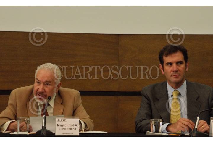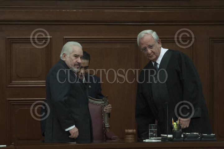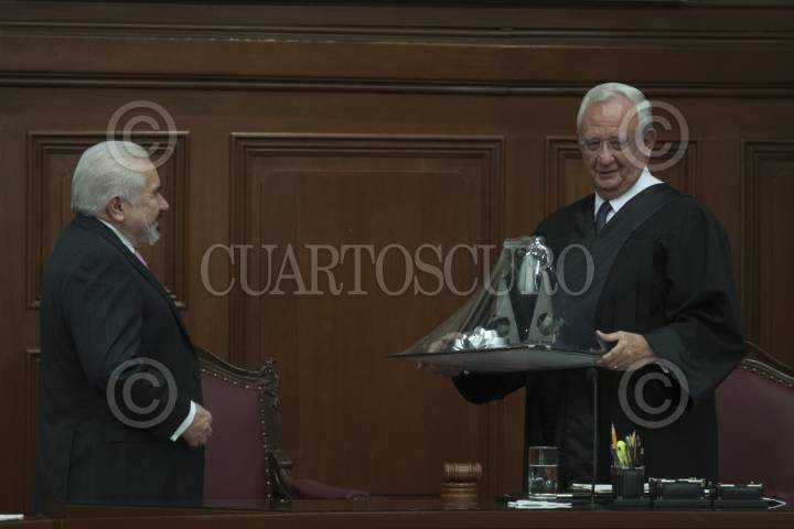 MÉXICO, D.F., 26JUNIO2012.- Alejandro Luna Ramos, magistrado presidente del Tribunal Electoral del Poder Judicial de la Federación (TEPJF), y Juan N. Silva Meza, ministro presidente de la Suprema Corte de Justicia, participaron una sesión solemne celebrada con motivo del 25 aniversario del inicio de sesiones del primer órgano contencioso electoral, que se convirtió en el actual TEPJF. FOTO: MOISÉS PABLO /CUARTOSCURO.COM