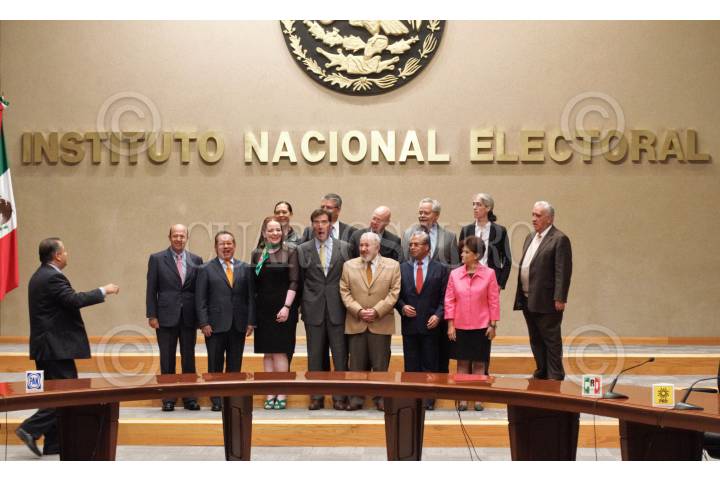 MÉXICO, D .F.. 08AGOSTO2014.- Alejandro Luna Ramos, Magistrado presidente del Tribunal Electoral del Poder Judicial de la Nación (TEPJF), y Lorenzo Córdova, consejero presidente del Instituto Nacional Electoral (INE), firmaron un “Convenio de colaboración para el intercambio de información en los Procedimientos Especiales Sancionadores” que convengan para el próximo periodo electoral en 2015. Previo a la firma del convenio los consejeros electorales y magistrados acudieron a la sala de sesiones del INE a realizar la toma de la fotografía oficial. FOTO: MARÍA JOSÉ MARTÍNEZ /CUARTOSCURO.COM