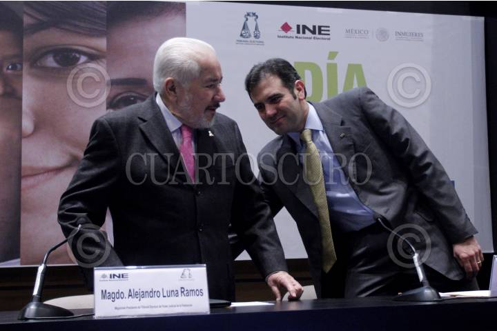 MÉXICO, D.F., 05MARZO2015.- Alejandro Luna Ramos, Magistrado Presidente del Tribunal Electoral del Poder Judicial de la Federación junto a Lorenzo Cordova, Consejero Presidente del Instituto Nacional Electoral durante la celebración del Día Internacional de la Mujer. FOTO: ENRIQUE ORDÓÑEZ /CUARTOSCURO.COM