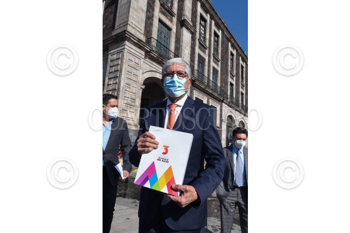 Los presidentes estatales del PRI, PAN, PRD y Nueva Alianza, Erick Sevilla Montes de Oca, Anuar Azar, Agustín Barrera y Mario Cervantes Palomino, integrantes de la Coalición “Va por el Estado de México” ofrecieron conferencia de prensa de manera conjunta.