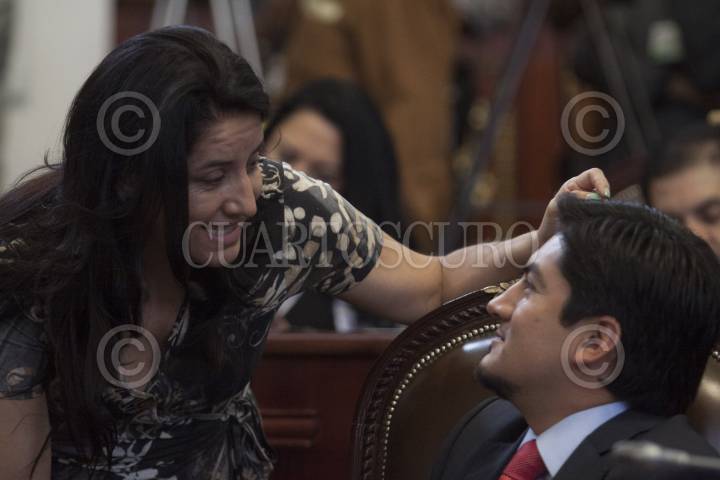 MÉXICO, D.F., 09OCTUBRE2012.- Los asambleístas Antonia Cruz y Alejandro Piña, en la sesión de la ALDF. FOTO: MOISÉS PABLO /CUARTOSCURO.COM