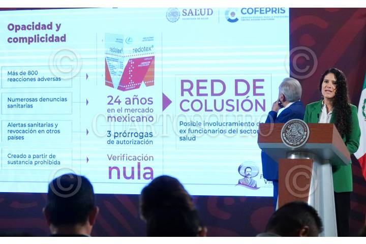Alejandro Svarch expuso el caso del medicamento Redotex durante la conferencia matutina desde Palacio Nacional.
