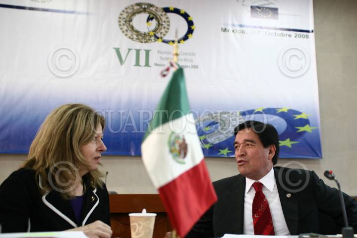 MÉXICO, D.F., 29OCTUBRE2008.- La diputada alemana Erika Mann, presidenta de la Delegación del Parlamento Europeo, junto con el senador del PRD, José Guadarrama Márquez, durante los trabajos de la VII Reunión de la Comisión Parlamentaria Mixta México-Unión Europea. Ambos legisladores realizaron una evaluación de las políticas, económias de cooperación y la Asociación Estratégica entre la Unión Europea y México. FOTO: CUARTOSCURO.COM