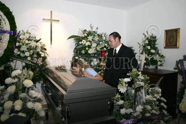 MEXICO, D.f., 23MAYO2006.- El cronista deportivo Ángel Fernández, murió esta madrugada a los 80 años, a causa de un paro respiratorio, sus restos son velados en una funeraria de Felix Cuevas. En la imagen su nieta Alexa y su hijo Ali Fernández. FOTO: Moisés Pablo/CUARTOSCURO.COM