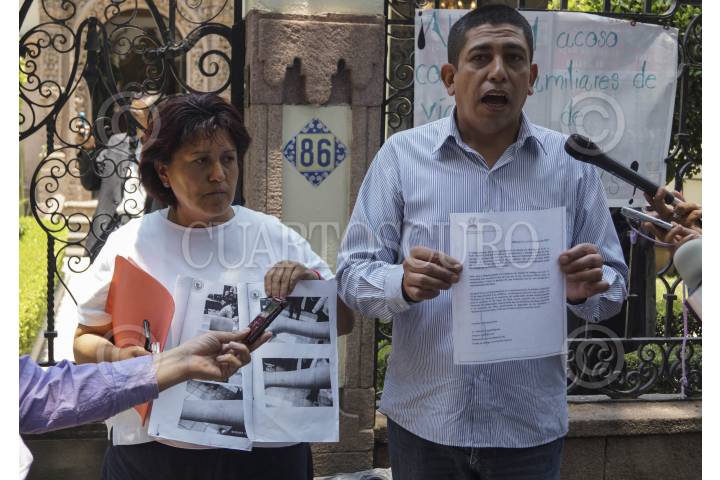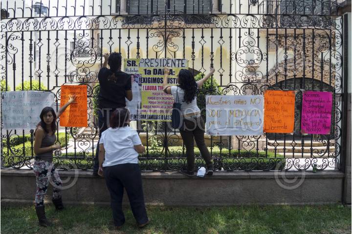 MÉXICO, D.F., 22MAYO2013.- Rubén Alejandro Pérez Vilches y Laura Olivia de León Caballero, padres de Laura Alexa Pérez de León, quien se encuentra en una casa de asistencia para menores del DIF estatal; con la solidaridad de miembros de organizaciones sociales y de derechos humanos, se manifestaron a las afueras de la representación del estado de Hidalgo en la ciudad de México. En demanda de la libertad de Alexa, los padres explicaron a los medios de comunicación que la menor se encuentra secuestrada por el DIF de Hidalgo, y el gobernador del estado no ha querido atender el tema y dar una audiencia. FOTO: ADOLFO VALTIERRA /CUARTOSCURO.COM