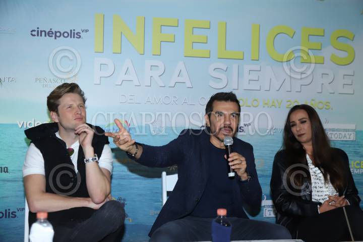 Alexander Acha, Adrián Uribe y Consuelo Duval durante la conferencia de prensa de la película “Infelices para siempre”.