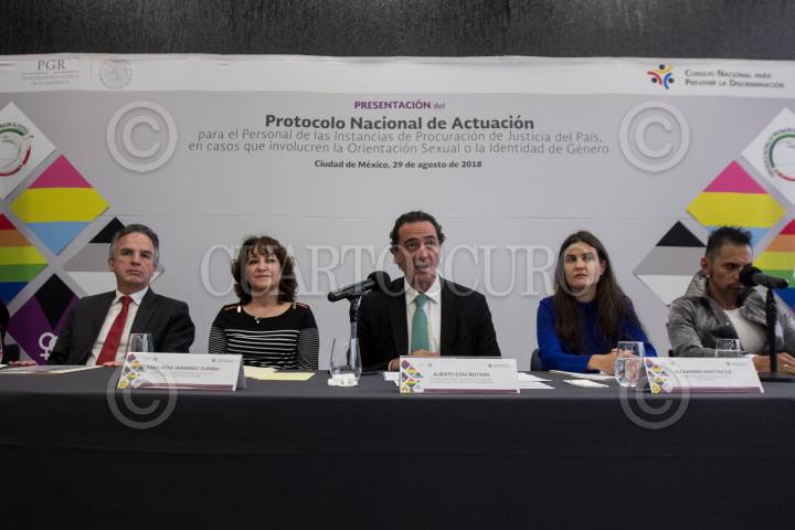CIUDAD DE MÉXICO, 29AGOSTO2018.- Alberto Elías Beltrán, subprocurador Jurídico y de Asuntos Internacionales en Suplencia del C. Procurador de la República, y Alexandra Haas Paciuc, presidenta del Conseja Nacional para Prevenir la Discriminación (CONAPRED) encabezaron la presentación del Protocolo Nacional de actuación para el Personal de las Instituciones de Procuración de Justicia del País, en Casos que involucren la Orientación Sexual o la identidad de Género. FOTO: GALO CAÑAS /CUARTOSCURO.COM