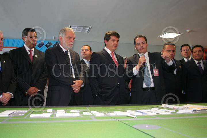 TOLUCA, EDOMEZ, 31ENERO2007.- El Subsecretario de Transporte de la SCT Federal, Manuel Rodriguez Arregui (centro), el director de Aeropuertos y Servicios Auxiliares, Ernesto Velazco Leon, el Director General de la Administradora Mexiquense del Aeropuero Internacional de Toluca, Alexandro Argudib Le roy y el Secretario de Comunicaciones del Estado de Mexico, Gerardo Ruiz Esparza, realizaron un recorrido por la nuevas instalaciones del aeropuerto de Toluca. FOTO: CARLOS TISCHLER/CAURTOSCURO.COM