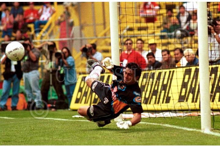 El portero Alexandro Alvarez paro el penalty al minuto tres del encuentro Necaxa vs Morelia, al final el marcador fue de 1-1. FOTO: Christian Palma/CUARTOSCURO.COM