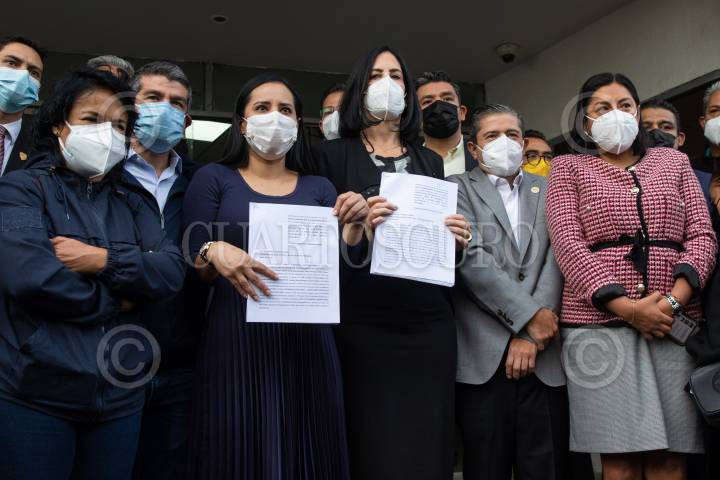 Los alcaldes electos Margarita Saldaña, Mauricio Tabe, Sandra Cuevas, Lía Limón, Giovanni Gutiérrez, y Alfa González, acudieron a interponer una denuncia en la fiscalía por las agresiones recibida durante una manifestación en el Congreso de la Ciudad de México.