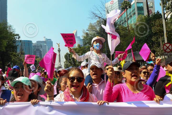 La alcaldesa de Tlalpan, Alfa González, marchó junto con ciudadanos de su demarcación en la movilización en defensa del INE.