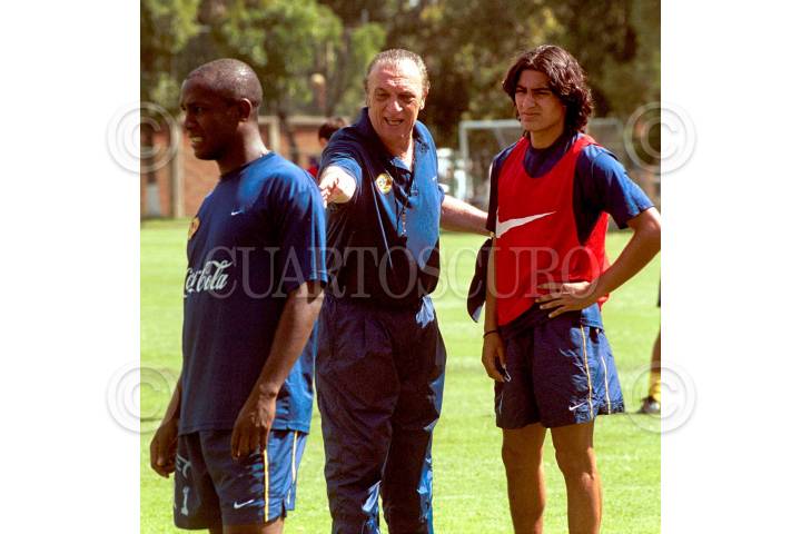 Alfio Basile director técnico de las Aguilas del América, durante el entrenamiento esta mañana. FOTO: Eduardo Loza/CUARTOSCURO.COM
