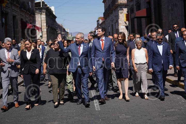 Alfredo Ramírez Bedolla, gobernador de Michoacán, y Alfonso Martínez Alcázar, presidente municipal de Morelia, encabezaron la firmó de un convenio en materia de coordinación en seguridad.