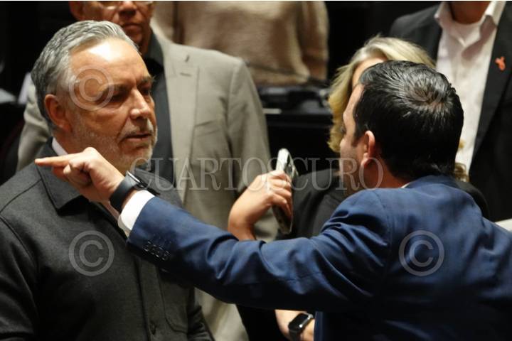 CIUDAD DE MÉXICO, 17SEPTIEMBRE2025.- Federico Döring, diputado del PAN, y Alfonso Ramírez Cuéllar, diputado de Morena, durante la sesión ordinaria semipresencial de la Cámara de Diputados en la que se analizó el Primer Informe de Gobierno Federal en materia política económica y social. FOTO: MARIO JASSO/CUARTOSCURO.COM