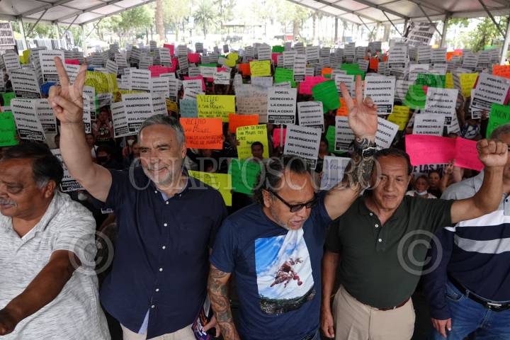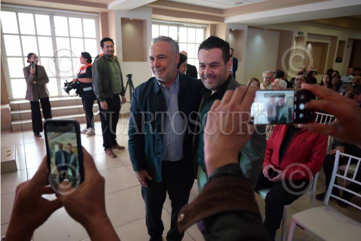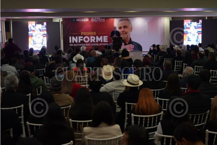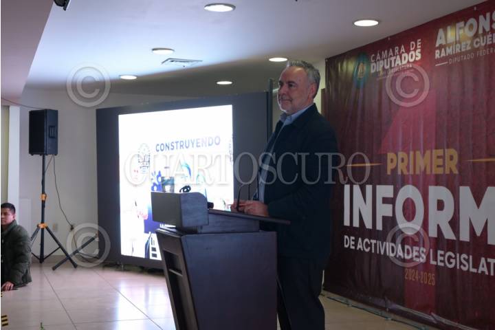 ZACATECAS, ZACATECAS, 18JULIO2025.- Alfonso Ramírez Cuellar, diputado federal por Morena, presentó su primer informe de trabajo legislativo en un hotel de la capital zacatecana. Durante el acto estuvo acompañado de Miguel Varela, presidente municipal de Zacatecas (PAN), Ulises Mejía Haro, diputado federal, Arturo Romo, exgobernador de Zacatecas y Juan José Quirino Salas, exsenador de la República. FOTO: EDGAR CHÁVEZ /CUARTOSCURO.COM