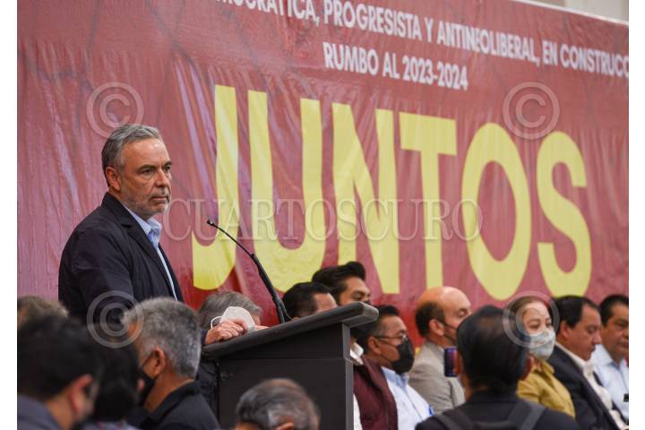 Alfonso Ramírez Cuellar, ex dirigente nacional de Morena durante la presentación del Frente Juntos por un mejor Estado de México es Posible.