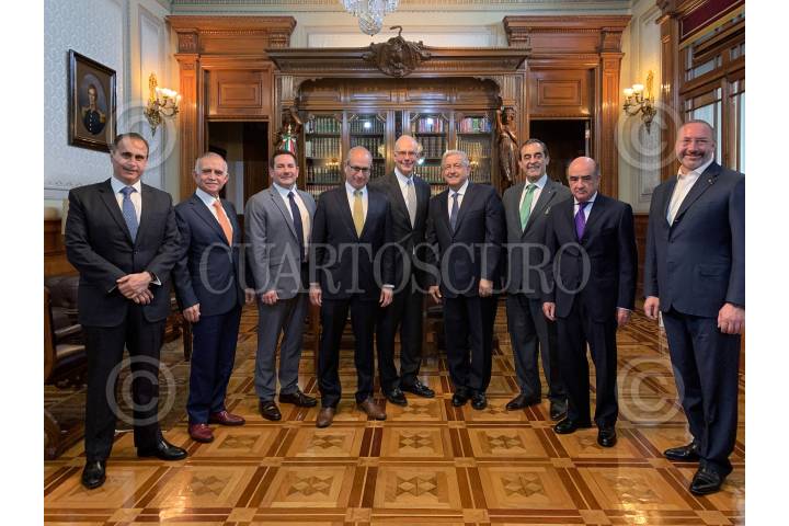 CIUDAD DE MÉXICO, 28MAYO2019.- Andrés Manuel López Obrador, Presidente de México se reunió en su oficina de Palacio Nacional con directivos de Bombardier Inc., empresa canadiense considerada líder de la producción de material para ferrocarril, aviones regionales y otros servicios comerciales. En la imagen José Manuel Madero, Alfonso Romo Garza, jefe de la Oficina de Presidencia, Karl Reichelt-VP, Business Development, Elliot Lee Sander, President &CEO, Bombardier Americas, Daniel Desjardins, Chairman of the Board Bombardier, Andrés Manuel López Obrador, Presidente de México, Carlos Eduardo Represas, Chairman América Latina Bombardier, Luis Téllez Kuenzler y Frederic García. FOTO: PRESIDENCIA /CUARTOSCURO.COM