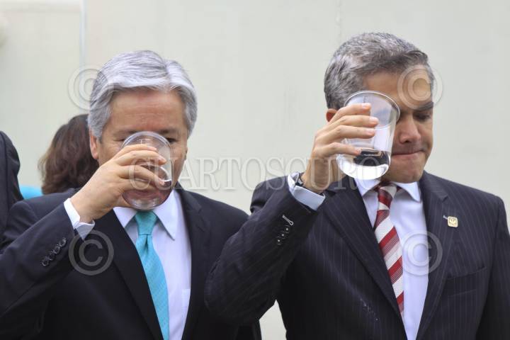MÉXICO, D.F., 20AGOSTO2014.- Alfonso Sarabia de la Garza, director del Aeropuerto Internacional de la Ciudad de México, y Miguel Ángel Mancera, Jefe de Gobierno, pusieron en marcha la planta potabilizadora Vista Alegre, que proporcionará de agua al aeropuerto de la capital. FOTO: MOISÉS PABLO /CUARTOSCURO.COM