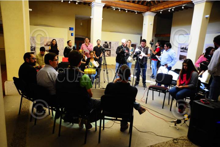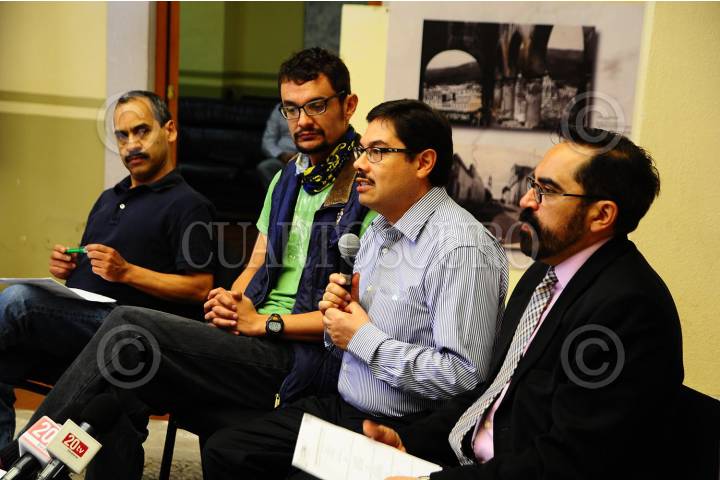 ZACATECAS, ZACATECAS, 07OCTUBRE2016.- Alfonso Vázquez Sosa, director del Instituto Zacatecano de Cultura, Héctor Ávila Ovalle, jefe de enseñanza e investigación del IZC , Sergio Mayorga Magallanes sub director de la Fototeca y Jaime Robledo Martínez, historiador presentaron el programa "Perspectivas de la Fotografía, Práctica e Investigación" como parte de los eventos del X aniversario de la Fototeca de Zacatecas que se realzaran los días 13 y 14 de Octubre. FOTO: CARLOS SEGURA /CUARTOSCURO.COM