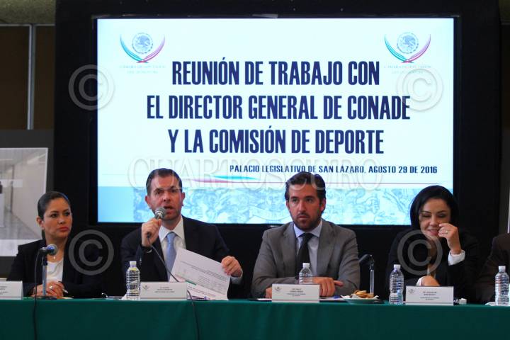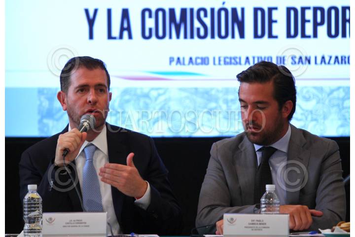 CIUDAD DE MÉXICO, 29AGOSTO2016.- Alfredo Castillo, director de la Comisión Nacional del Deporte (CONADE), y Pablo Gamboa Miner, presidente de la Comisión de Deporte de la Cámara de Diputados, durante la reunión de trabajo entre la CONADE y legisladores. FOTO: ADOLFO VLADIMIR / CUARTOSCURO.COM