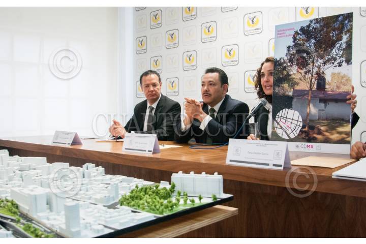 MÉXICO, D.F., 09MARZO2015.- Alfredo Hernández García, secretario de Obras y Servicios, Héctor Serrano, secretario de gobierno capitalino, y Tania Müller, secretaria de Medio Ambiente capitalina, ofrecieron una conferencia de prensa para dar detalles del proyecto del desnivel en circuito interior en su tramo Mixcoac Insurgentes. FOTO: DIEGO SIMÓN SÁNCHEZ /CUARTOSCURO.COM