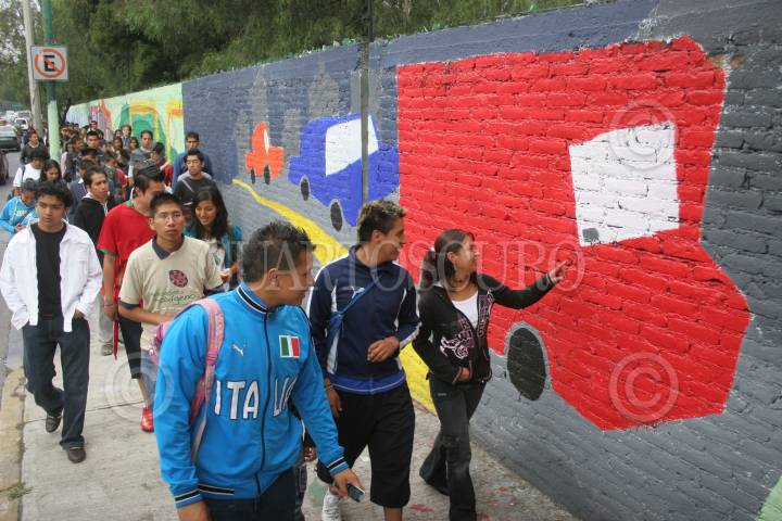 MÉXICO, D.F., 07AGOSTO2009.- El Instituto de la Juventud del Distrito Federal, inauguro el mural "Hagamos Algo" Realizado por jovenes del programa Empleo juvenil en verano, este mural se encuentra en una de las bardas del Country Club ubicado en cana de Miramontes. FOTO: RICARDO CASTELAN/CUARTOSCURO.COM