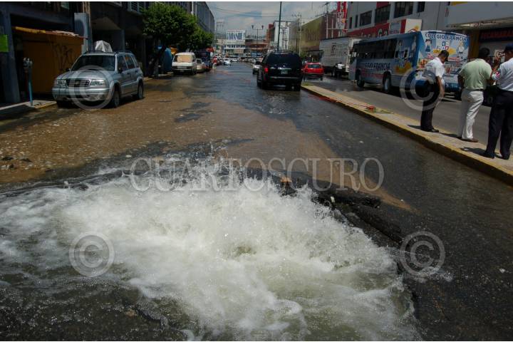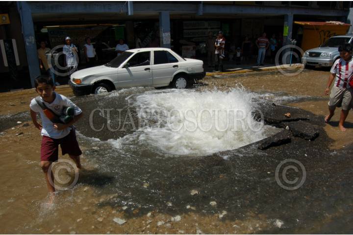 ACAPULCO, GUERRERO, 04SEPTIEMBRE2009.- Una fuga de agua provoco daños un vehículo estacionado sobre la avenida Cuauhtemoc de la colonia centro. Miles de litros se desperdiciaron sin que la dirección de agua potable y alcantarillado hiciera algo inmediatamente. Transito acordono dos calles para evitar incidentes. FOTO: MARINO D. VALDEZ/CUARTOSCURO.COM