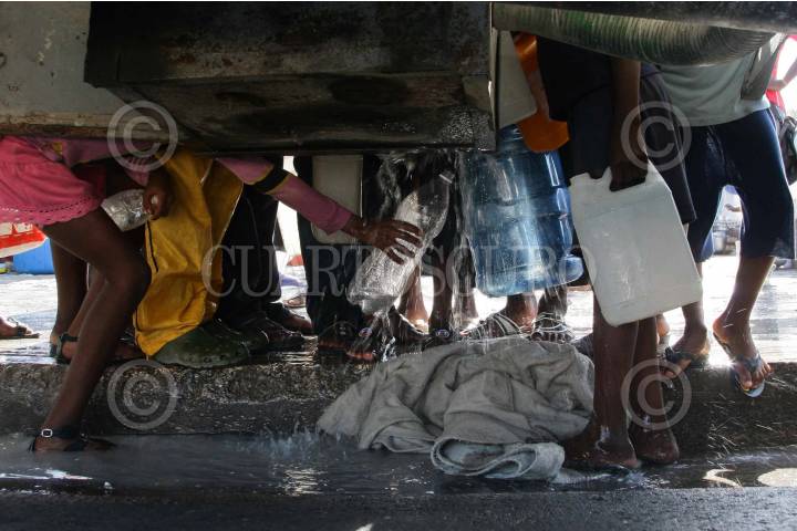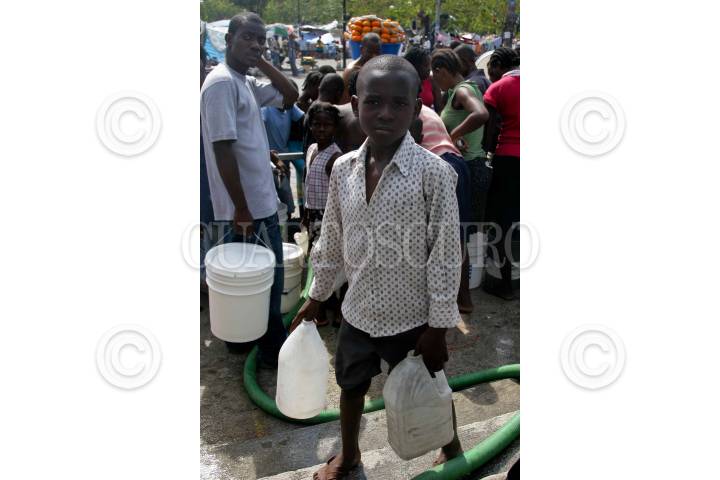 PUERTO PRÍNCIPE, HAITI, 26ENERO2009.- Jóvenes y niños haitianos hacen fila para conseguir un poco de agua para beber, bañarse o lavar algo de ropa. FOTO: ISAAC ESQUIVEL/CUARTOSCURO.COM