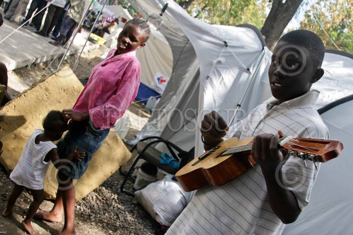 PUERTO PRÍNCIPE, HAITI, 26ENERO2009.- A pesar de toda la destrucción, jovenes tocan y cantan algo de música para alegrarse el día. FOTO: ISAAC ESQUIVEL/CUARTOSCURO.COM