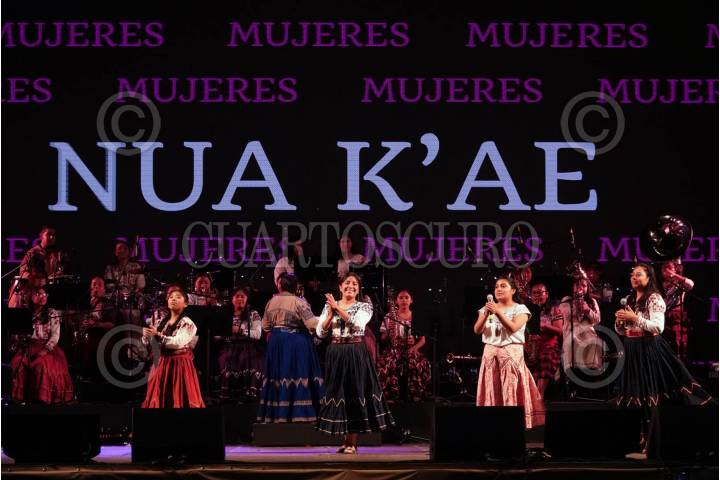 GUANAJUATO, GUANAJUATO, 26OCTUBRE2024.- En el marco de la edición 52 del Festival Internacional Cervantino, se presentaron las Oaxaqueñísimas como Mujeres del Viento Florido, María Reyna, Natalia Cruz, Silvia María y Ana Díaz, realizado en la explanada de la Alhóndiga de Granaditas. FOTO: GRACIELA LÓPEZ/CUARTOSCURO.COM