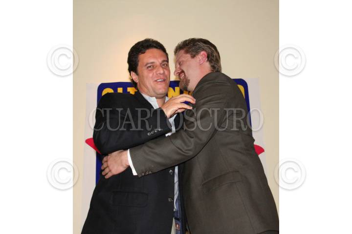 MÈXICO, D.F. 02JULIO2006.- Alberto Begnè Guerra, presidente del partido Alternativa y Luciano Pasco, coordinador de comunicaciòn social, minutos despuès de haber anunciado la obtenciòn de registro. FOTO: Paola Hidalgo/CUARTOSCURO.COM