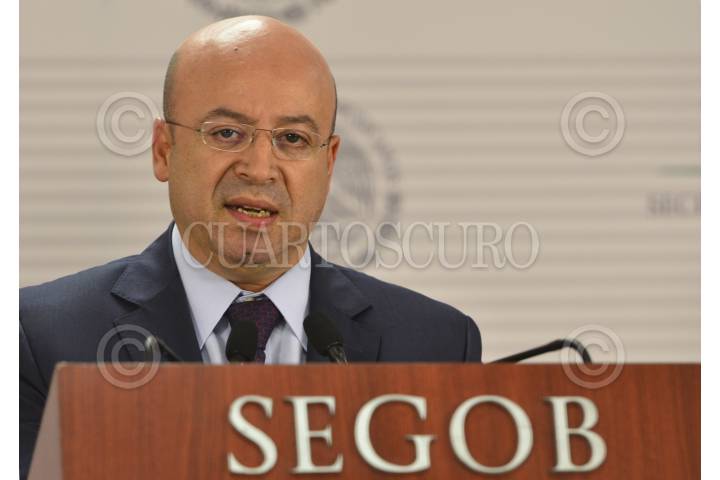 CIUDAD DE MÉXICO, 11MAYO2016.- El Comisionado Nacional de Seguridad Renato Sales informó de la detención de Enrique Torres Acosta “El Kike” a quien se le relaciona con los Arellano Félix e Ismael “Mayo” Zambada, en la sala de conferencias de la Secretaría de Gobernación. FOTO: ARMANDO MONROY /CUARTOSCURO.COM