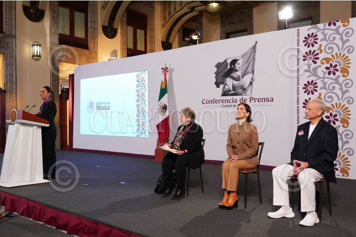 CIUDAD DE MÉXICO, 11OCTUBRE2024.- Claudia Sheinbaum, Presidenta de México, encabezó su mañanera del pueblo, en Palacio Nacional. La acompañaron Alicia Bárcena, titular de la Semarnat; Luz Elena González Escobar, secretaria de Energía, y Víctor Rodríguez Padilla, director de Pemex. El encuentro tuvo la temática de los proyectos energéticos y del accidente que sucedió en la planta Deer Park, ubicado en Texas, que de dejo como saldo dos trabajadores muertos. FOTO: PRESIDENCIA/CUARTOSCURO.COM
