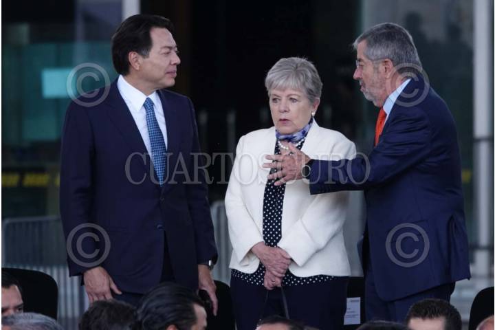 CIUDAD DE MÉXICO, 03ABRIL2025.- Mario Delgado, secretario de Educación Pública conversó con Alicia Barcena, secretaria de Medio Ambiente, y Juan Ramón de la Fuente, secretario de Relaciones Exteriores, durante su llegada a la presentación de la continuación del Plan México. Fortaleciendo la Economía y el Bienestar encabezado por la presidenta Claudia Sheinbaum en el Museo de Antropología e Historia. FOTO: GRACIELA LÓPEZ/CUARTOSCURO.COM